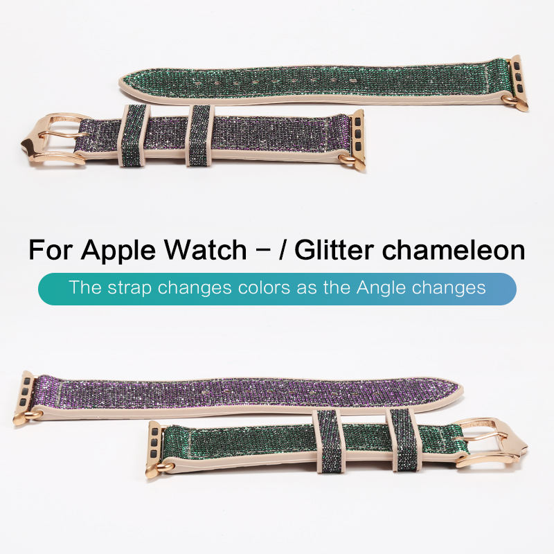 Wholesale Hot Seller 2025 New Arrivals Bling Glitter Silicone Leather Smart Watch Bands for Snap Buckle Sport Loop for Watch