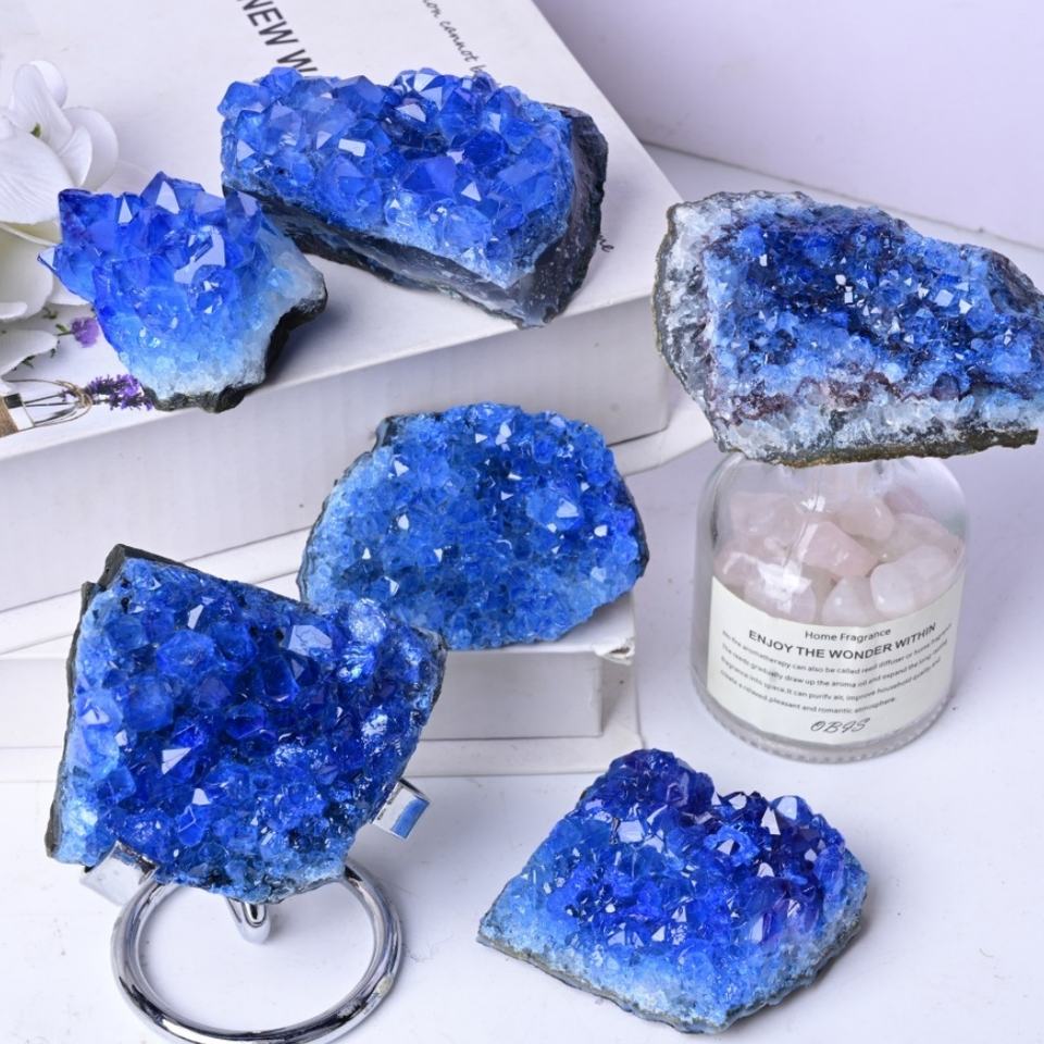Wholesale Hot Selling High Quality Eco-Friendly Dyed Blue Clusters Crystal Crafts Irregular Shape Meditation Home CrystalHola