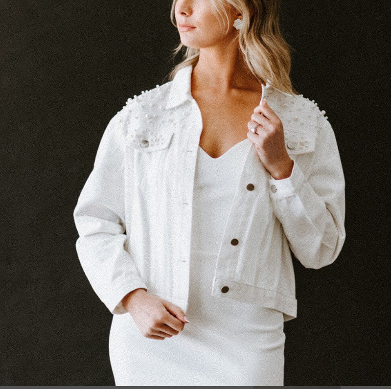 Wholesale Hot Selling Hiking High Quality Embroidery Women Pearl Bridal Denim Plus Size Long Sleeve Bead