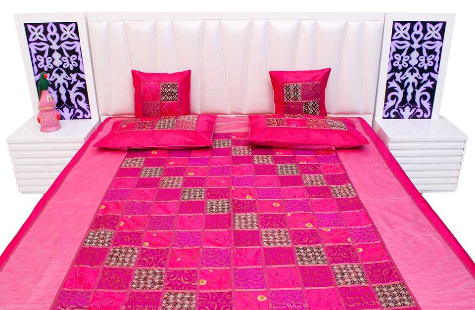 Wholesale Hotel Collection Bedspreads for Bed Room Pink Color Base Chess Design Silk Double Bed Cover Cushion Set 403