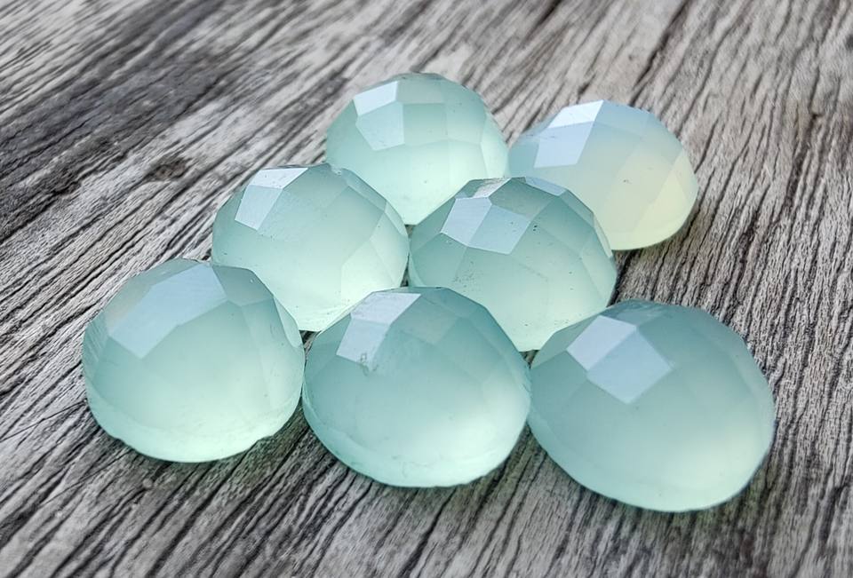 Wholesale IGI-Certified Loose Blue Checker Cut Flat Back Aqua Chalcedony Gemstones Natural Blue Color in All Sizes