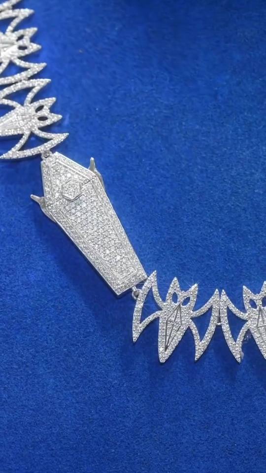 Wholesale Iced Out Moissanite Bat Chain Necklace Coffin Clasp 925 Silver VVS Hip Hop Jewelry Rapper Gothic