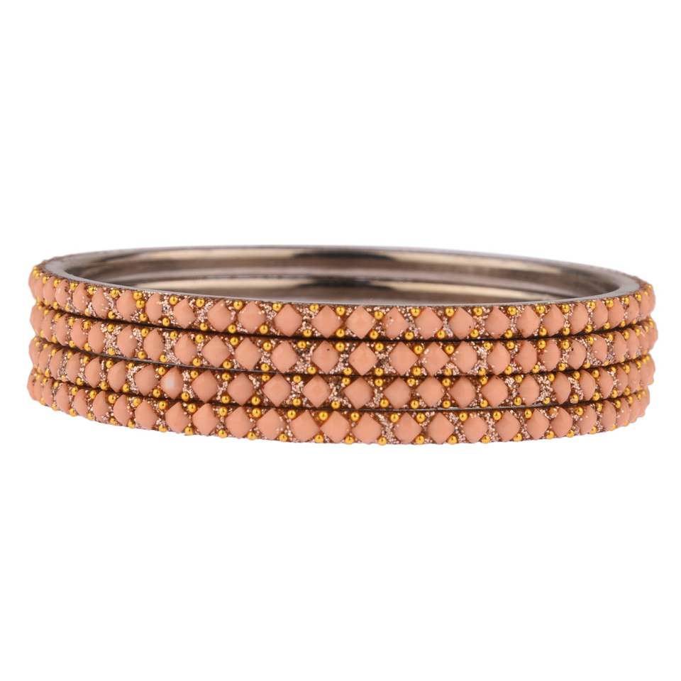Wholesale Indian Bangle Jewelry CZ Crystal Gold Plated Bangle Bracelet For Women, Beige Color
