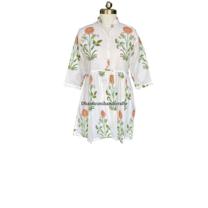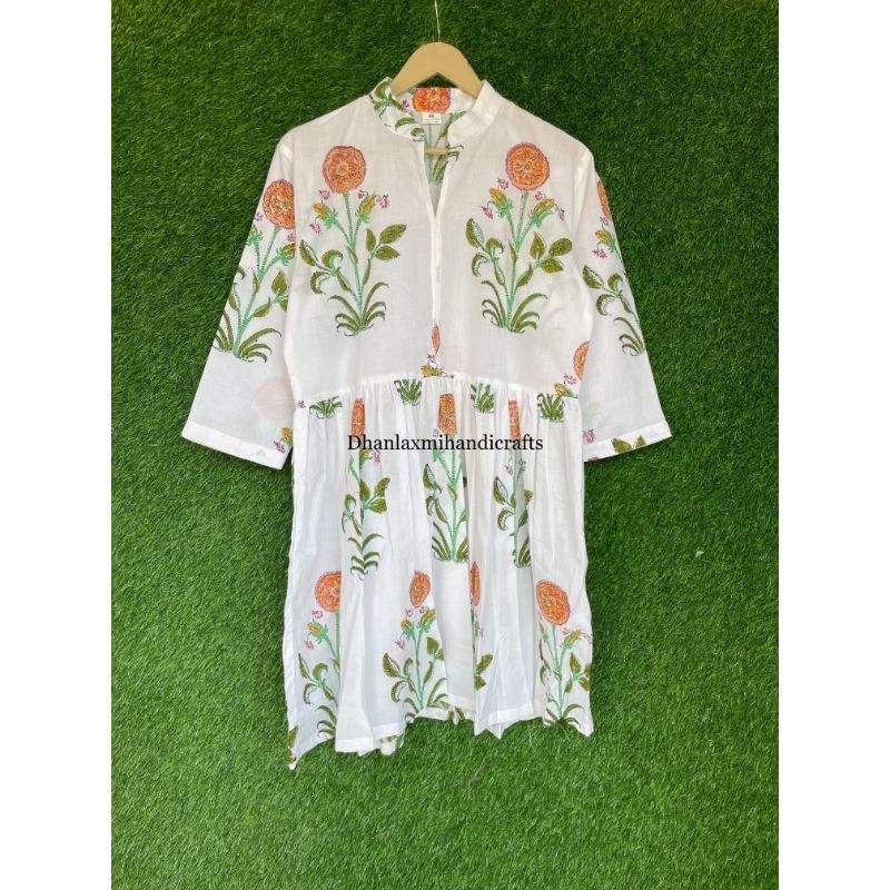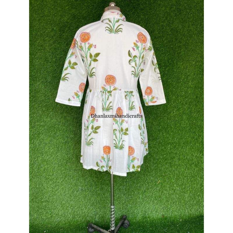 Wholesale Indian Cotton Dress Floral Printed Handmade Dressing Gown Summer Mini Dress Beach Wear Dress Bohemian Style