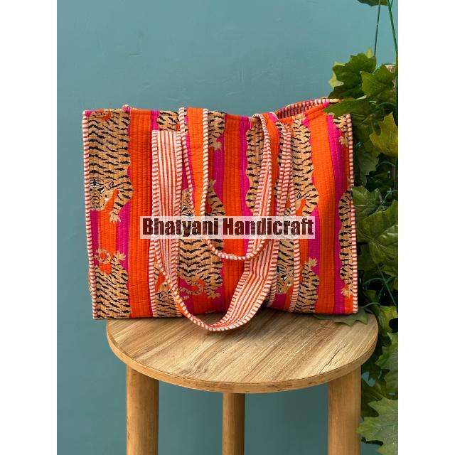 Wholesale Indian Cotton Quilted Tote Bag Handmade Ethnic Bohemian Style With Animal Print Canvas Lining Women's Gifts Bags