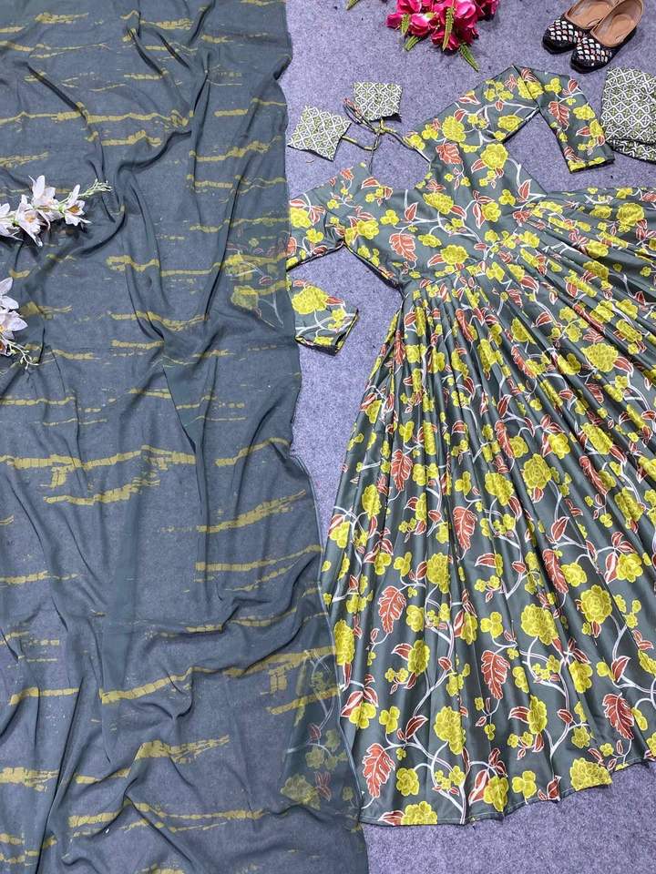 Product Name:Satin Silk Digital Print Gown And Bottom With Dupatta