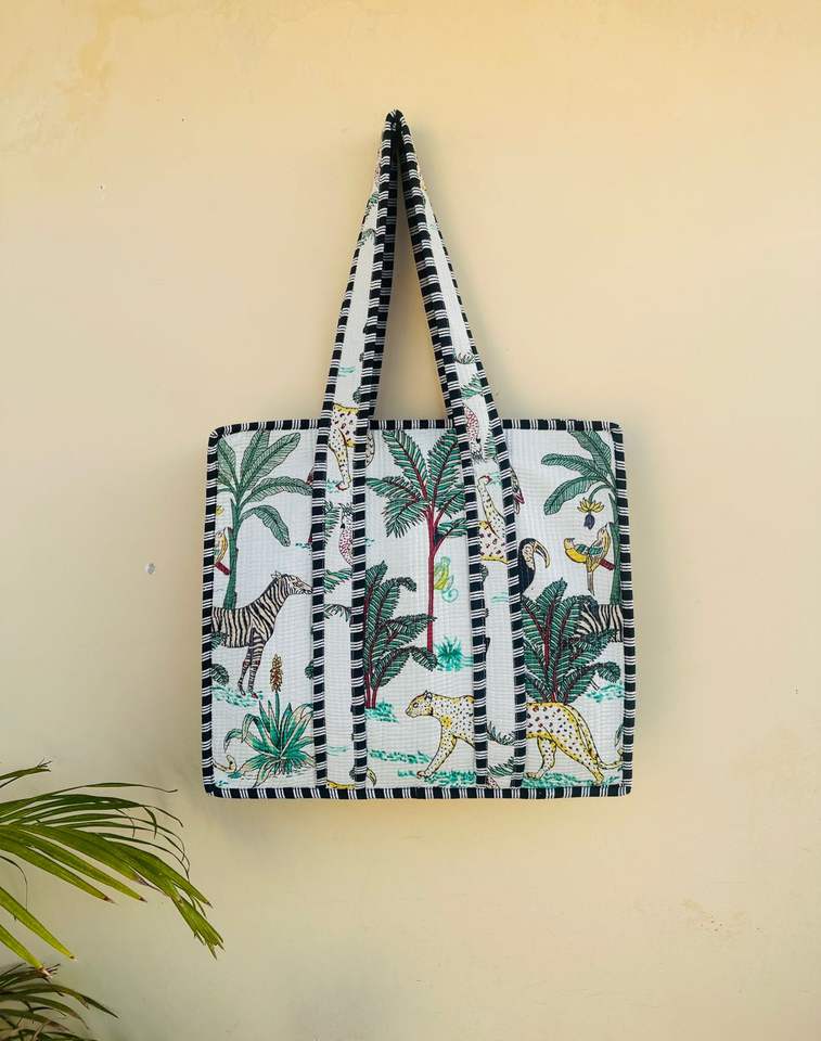 Wholesale Indian Hand Block Print Cotton Quilted Mini Tote Bag Handmade Shopping Grocery Bag for Daily Use Perfect Gifts for Her