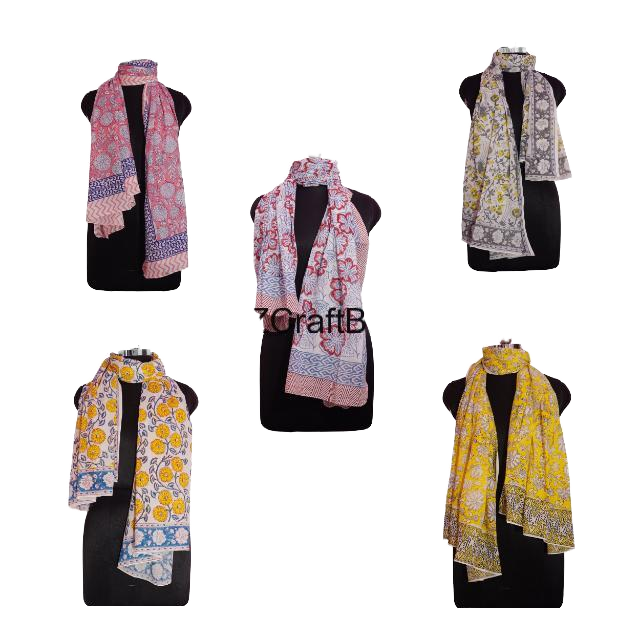 Wholesale Indian Hand Block Print Satin Sarongs Soft Cotton Floral Ethnic Long Summer Beach Pareo Shawls Assorted Ethnic Shawls