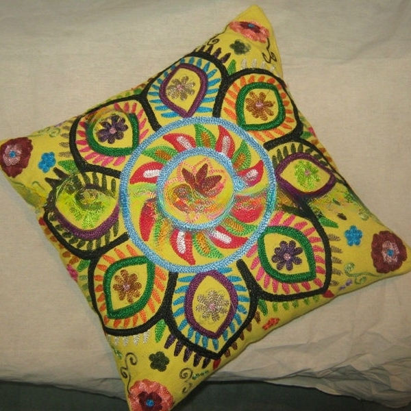 Wholesale Indian Handmade Cotton Embroidered Pom Pom Suzani Cushion Covers for Home Decor and Hotel Use