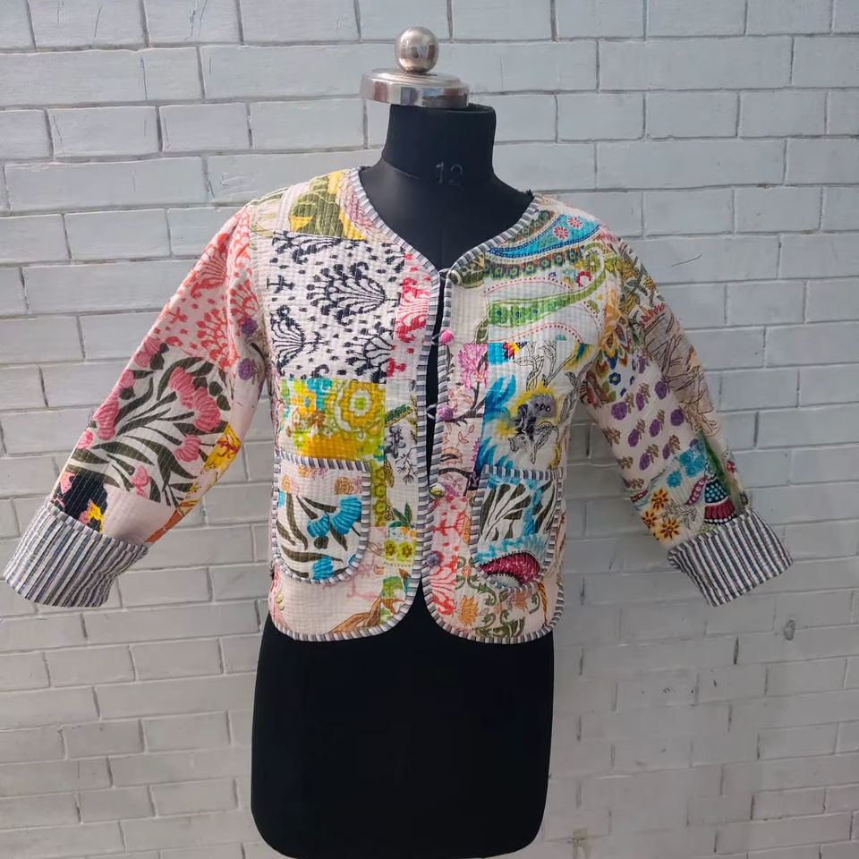 Wholesale Indian Handmade Eco-Friendly Quick Dry Quilted Cotton Jacket Vintage Patchwork Kantha Floral Printed Breathable Jacket