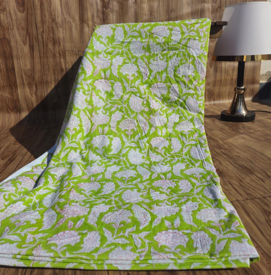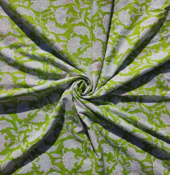 Handmade Block Print Cotton Running Fabric Green Eco Friendly Indian Fabric by the Yard for Dress Sewing and Craft Use
