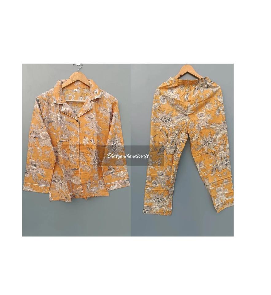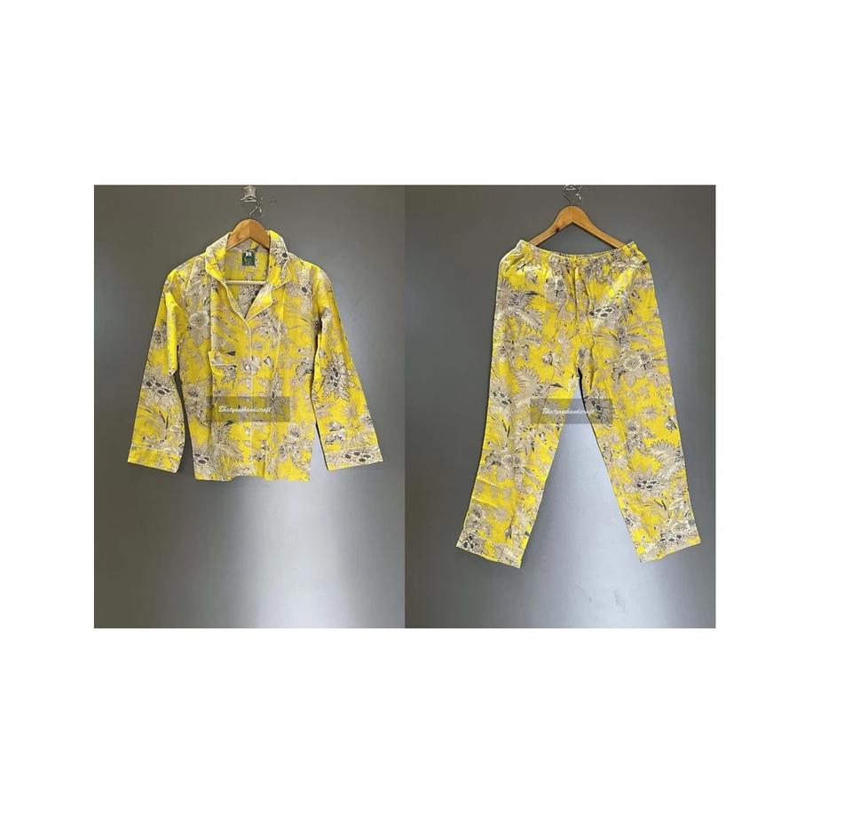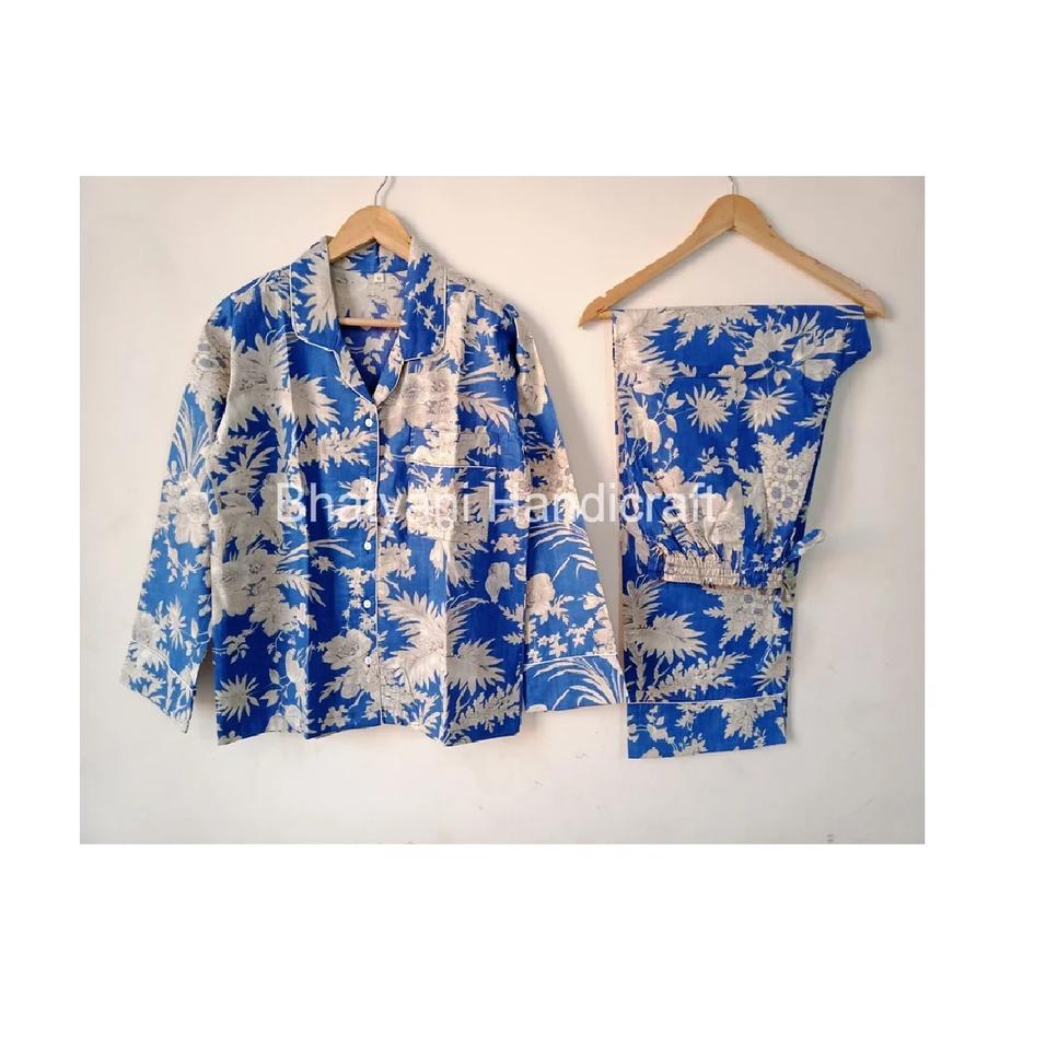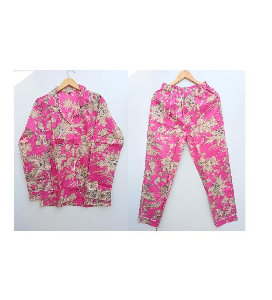Wholesale Indian Handmade Pure Cotton Pajama Set for Women V-neck Sleepwear Night Suit Soft Comfortable Elastic Waist Summer