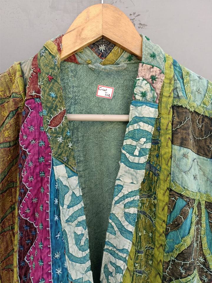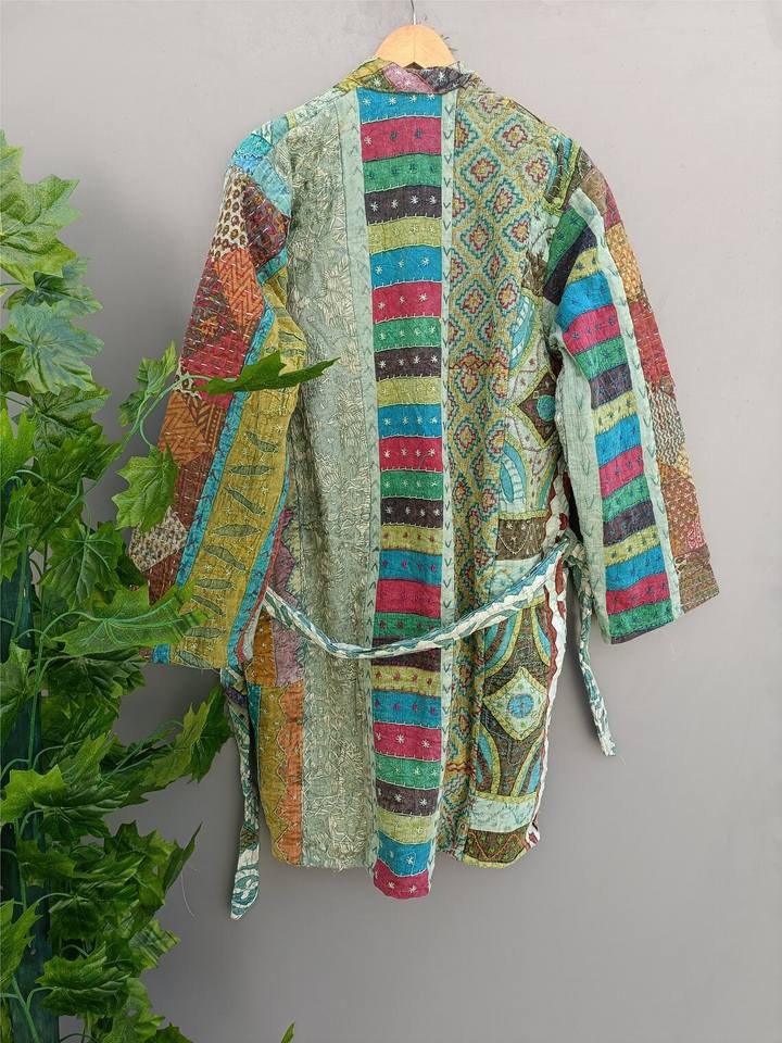 Wholesale Indian Quilted Patchwork Kantha Jacket for Women Long Winter Coat Full Sleeves Belt Cotton-Filled Bridal Dressing Gown