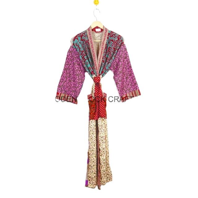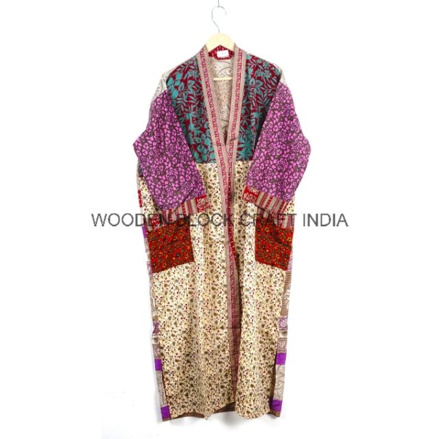 Wholesale Indian Vintage Silk Satin Sari Maxi Gown Kimono Robe Elegant Beachwear Bathrobe Bikini Cover Summer Wear Breathable