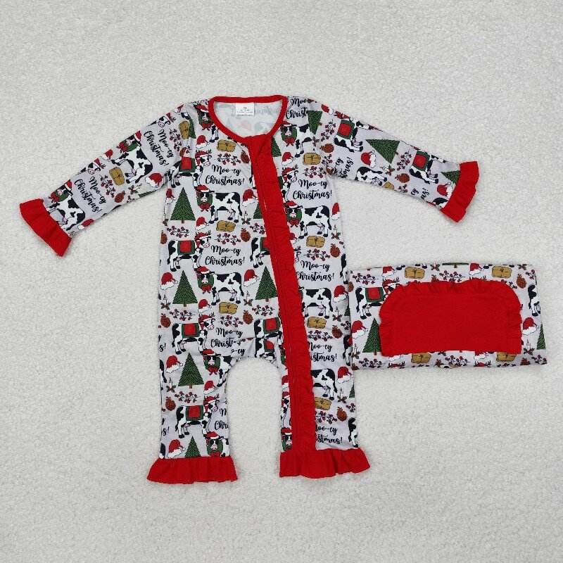 Wholesale Infant Red Christmas Trees Print Floral Romper Set Long Sleeve Jumpsuit with Zipper Child Sleeper ODM Supply