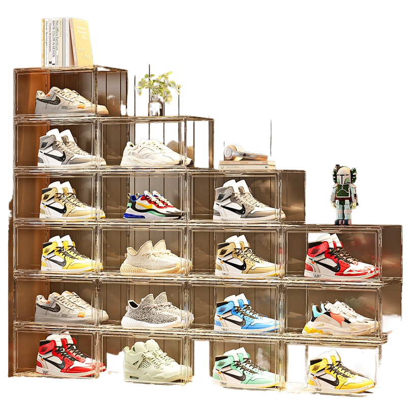 Wholesale Free Installation Transparent Foldable Organizer Portable Clear Collapsible Shoe Rack Box Storage Cabinet Bins