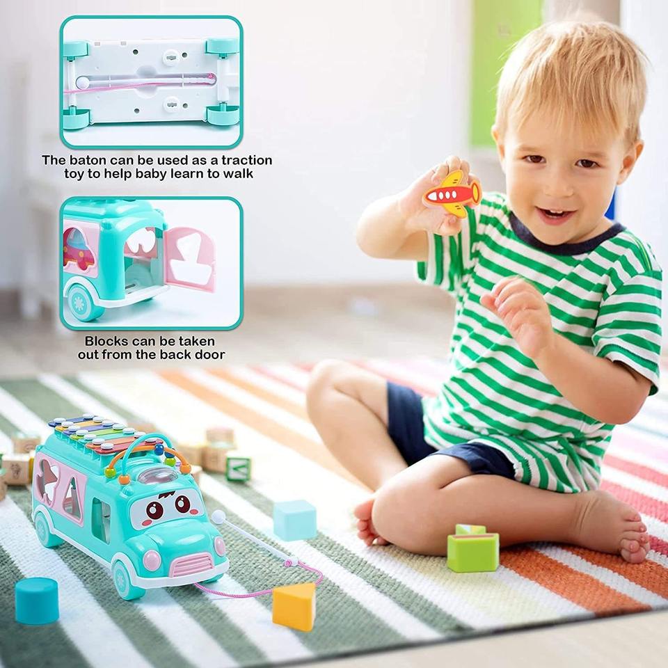 Wholesale Interactive Baby Musical Toy 5-in-1 Shape Sorting Xylophone Piano and Building Blocks Bus Toy OEM/ODM Customizable