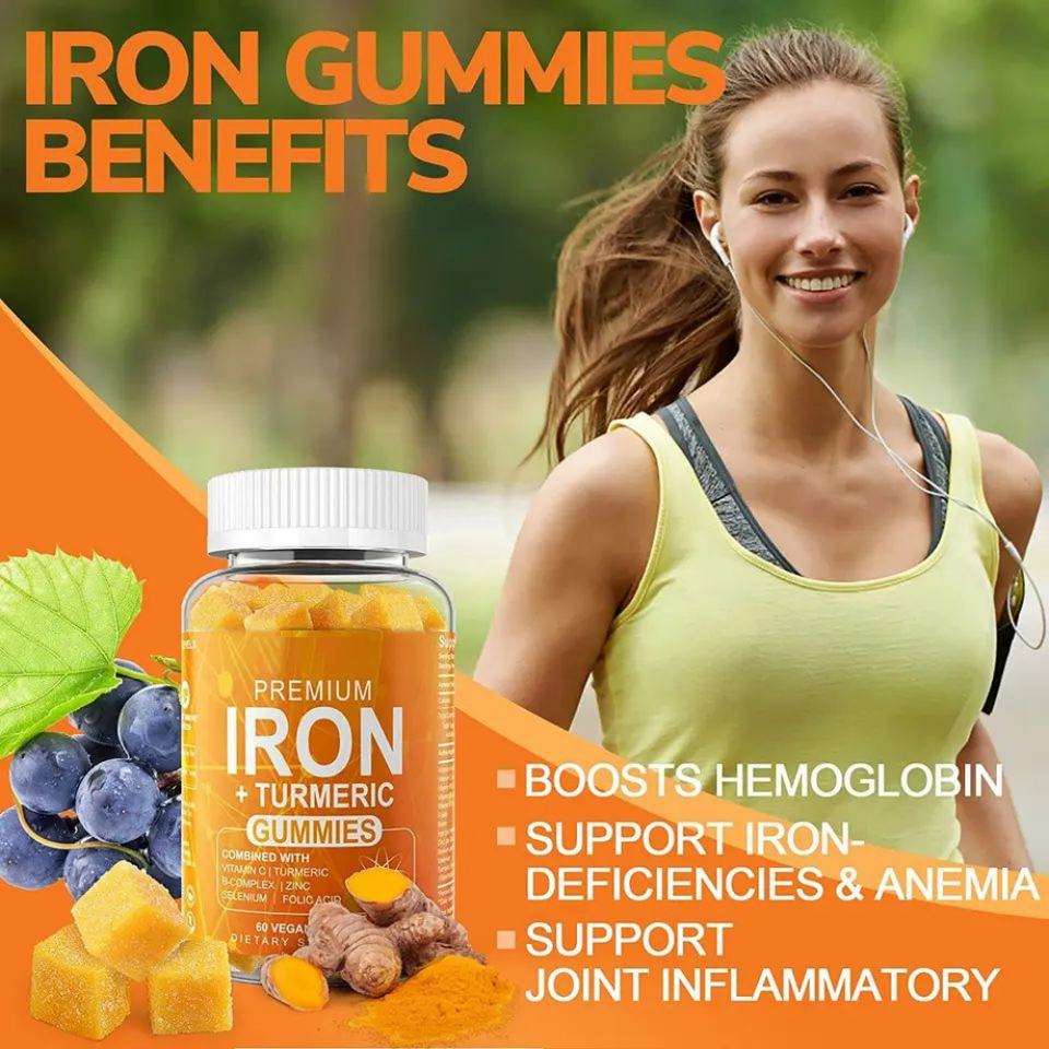 Wholesale Iron Gummy Manufacturer Custom Formula with 600mg Turmeric Low MOQ Private Label Vitality Supplement
