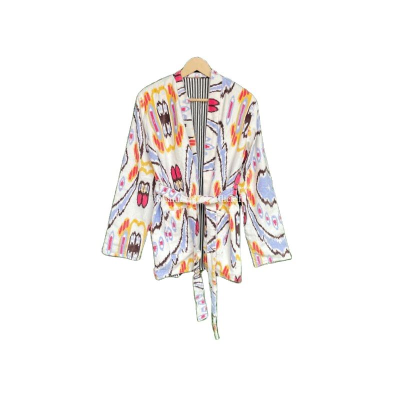 Wholesale Jackets Lot Indian Cotton Velvet Jacket With Belt Handmade Winter Coat Bohemian Kimono Jacket Ikat Printed Overcoat