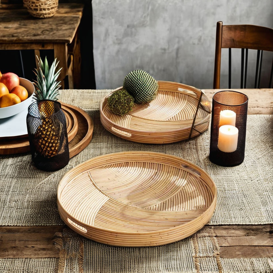 Wholesale Jelani Cane Round Trays by TienPhong | Handwoven Natural Decorative & Serving Tray Set of 2 for Home, Dining & Display