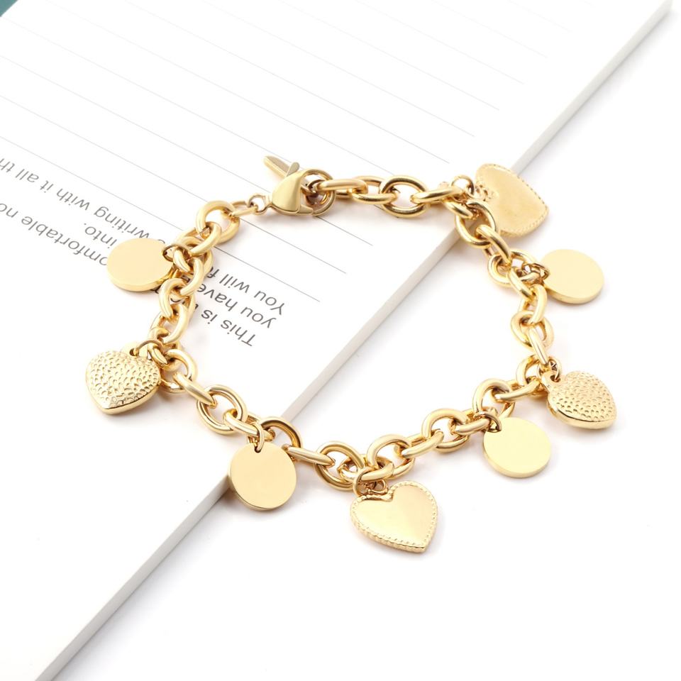 Wholesale Jewellery 18K Gold Bracelet Heart & Round Shape Pendant Bracelets for Ladies