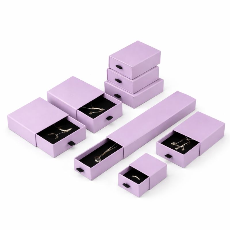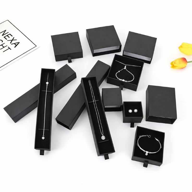 Wholesale Jewelry Set Box Luxury Rigid Sliding Jewelry Gift Box Microfiber Insert Debossing Custom Logo Glossy Lamination OEM