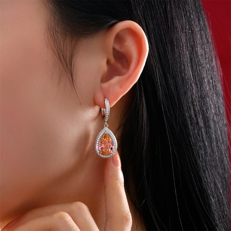 Wholesale Jewelry White Gold Plated 925 Sterling Silver Stud Earrings Pear Cut High carbon diamond Earrings for Women