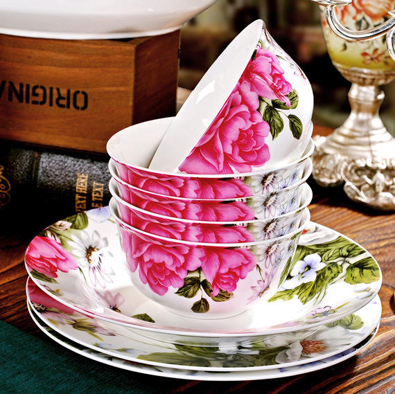 Wholesale Jingdezhen Eco Friendly Handpainted Floral Bone China Dinnerware Sets Bowls and Plates for 10 People