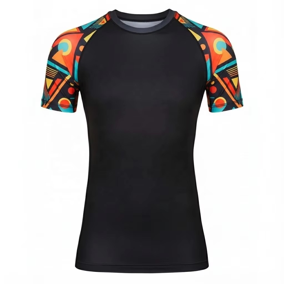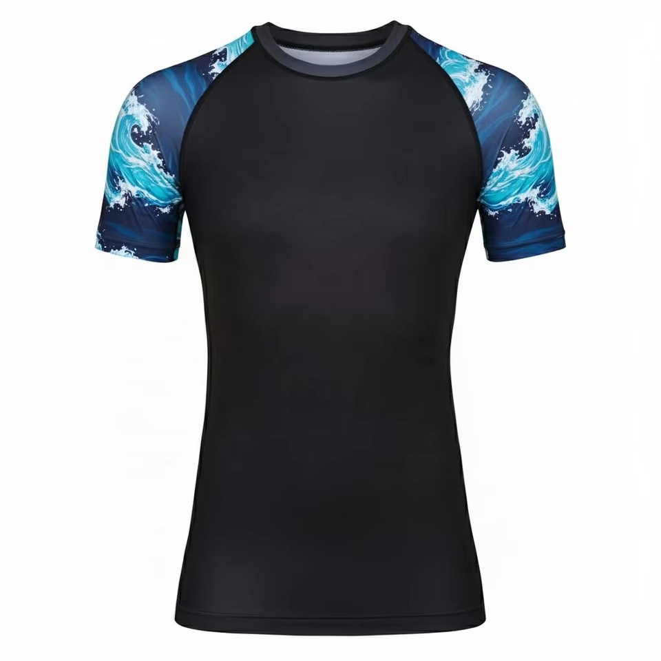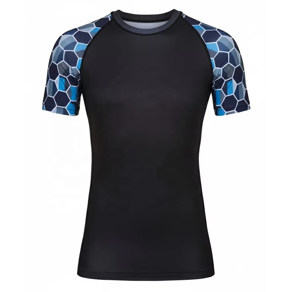 Wholesale Jitsu Gym Rash Guard Protection Wear Fitness Compression Swim T Shirts Custom Printed MMA BJJ Men Spandex/Polyester