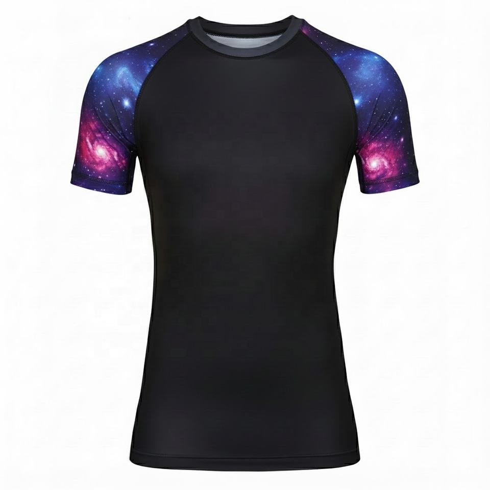 Wholesale Men's MMA BJJ Compression Rashguard Anti-UV UPF50 Washed Polyester/Nylon Quick Dry Breathable Custom Logo