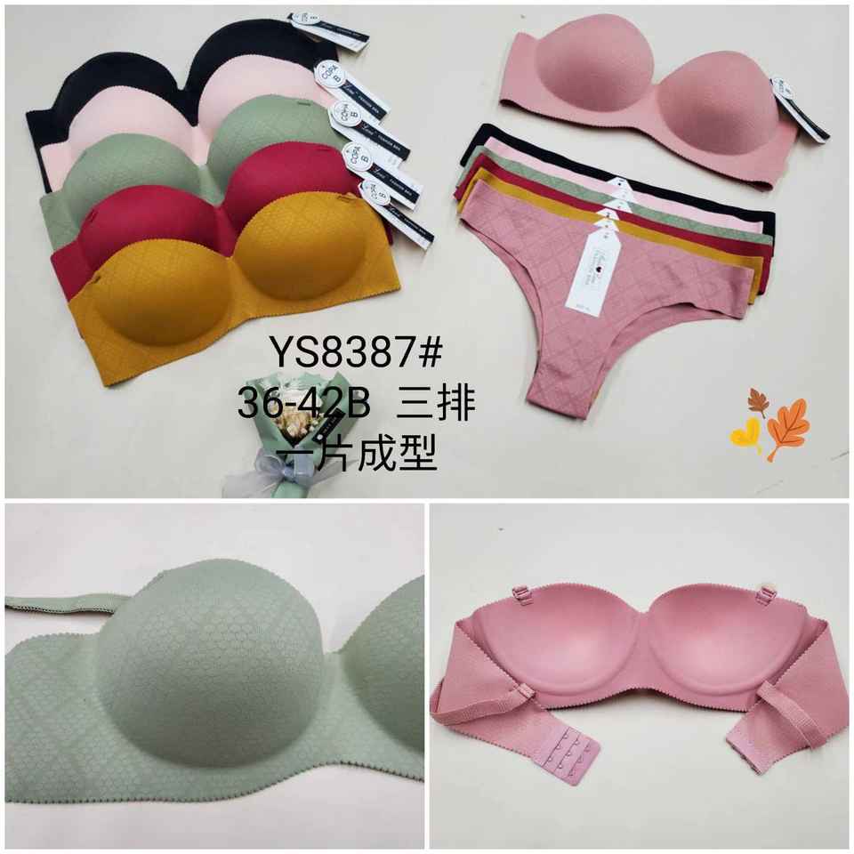 Wholesale Juegos YS8387 Comfortable Seamless Bra Set 36-42B Size One Piece Three Rows Underwear Custom Logo Print for Women's