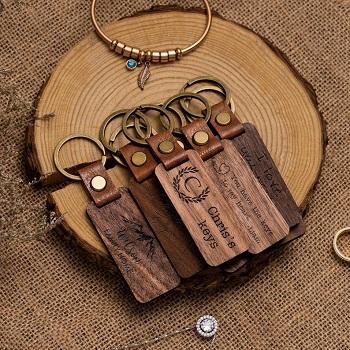 Wholesale Keyring Blank Personalized Customizable Wooden Fashion Designer Key Chains Bulk Custom Wooden Keychain Wood Key Chains