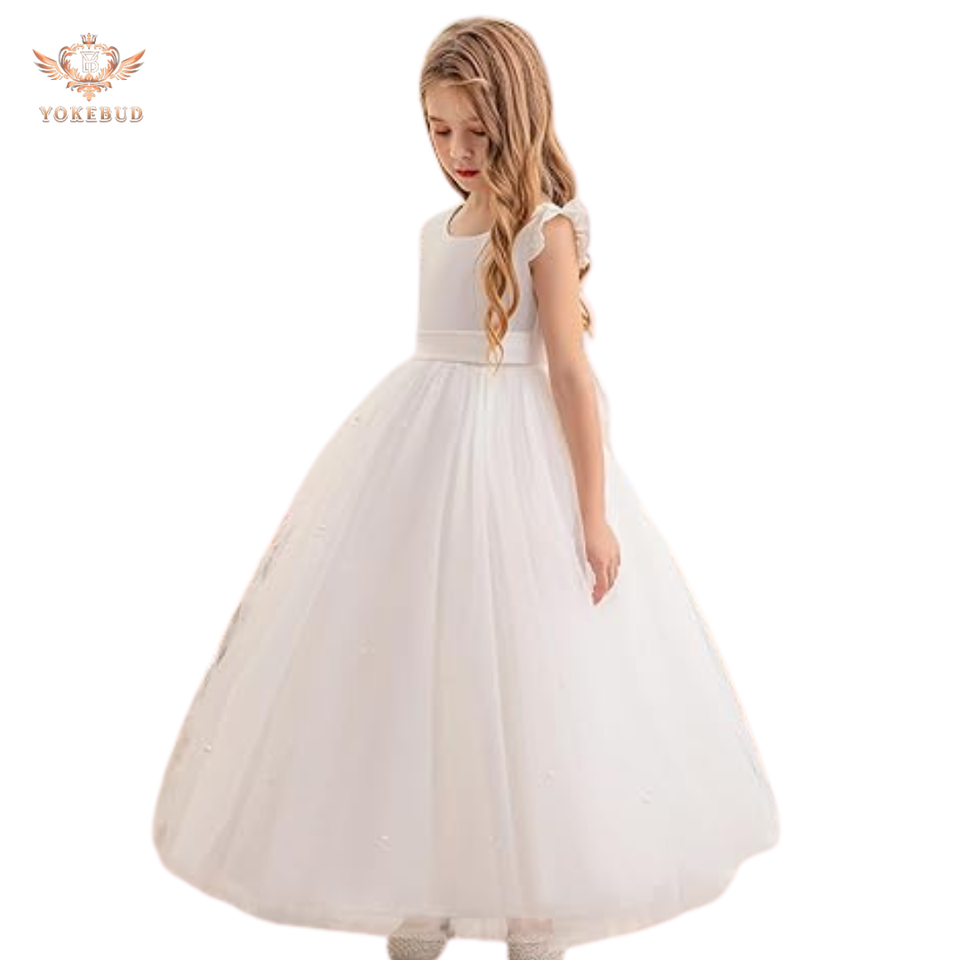 Wholesale Kids Princess Wedding Guest Dress Ruffle Tulle Satin Birthday Party Pageant Gown Bow Decoration for Flower Girls BD