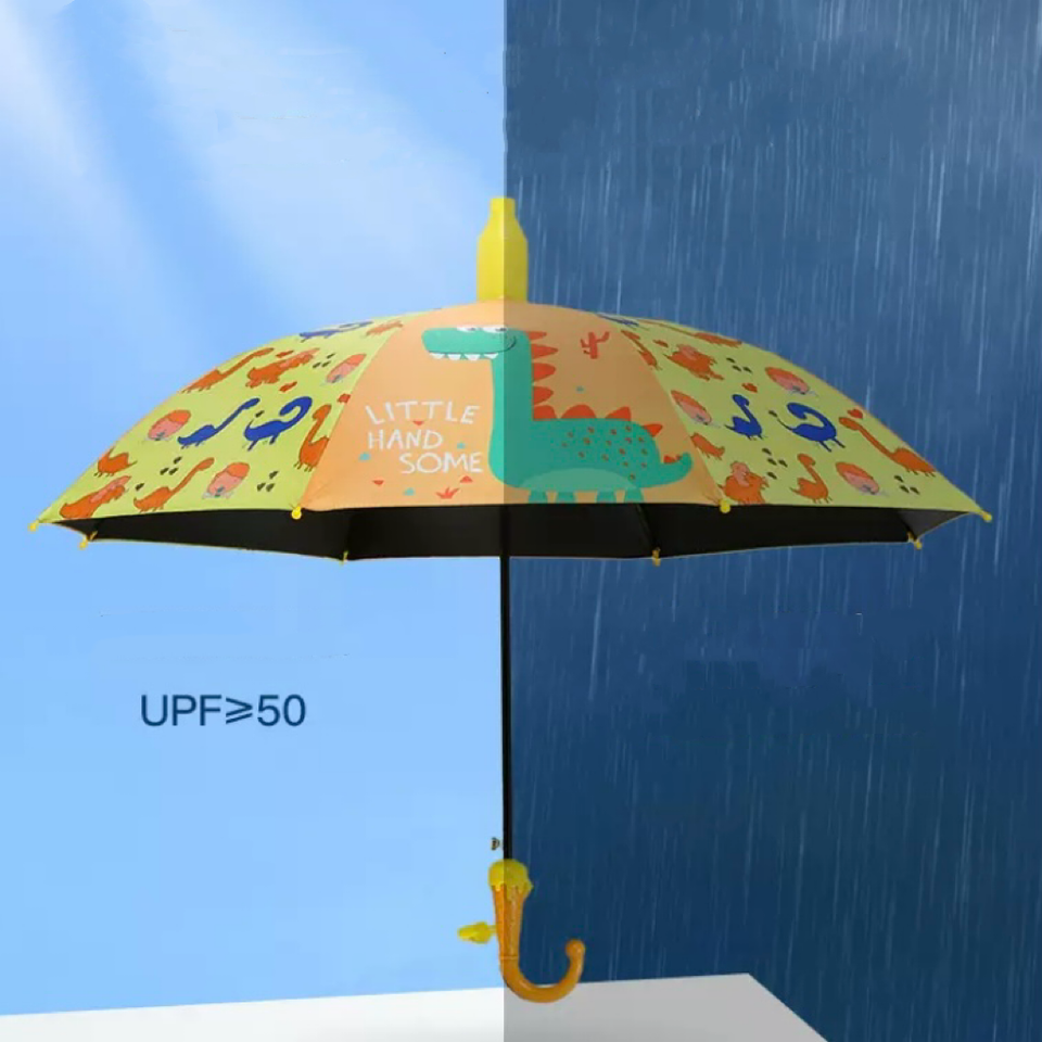 Straight Children's Umbrella with UV Protection Water-repellent Nylon Fabric Cute Cheerful Sun Design
