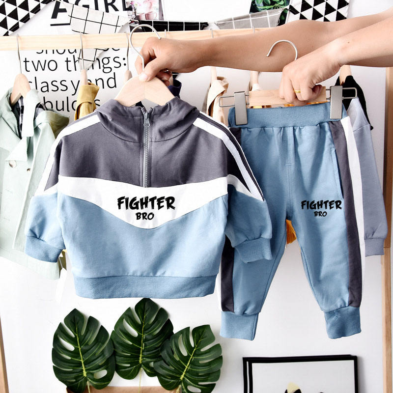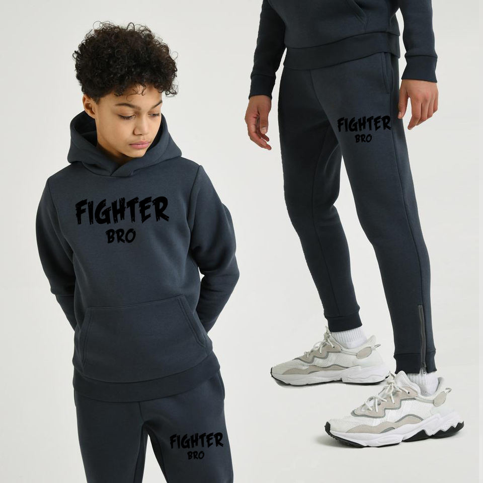 Wholesale Kids Sweatsuit Set 95% Cotton Blank Zipper Hoodies Sweat Pants Set for Girls Boy