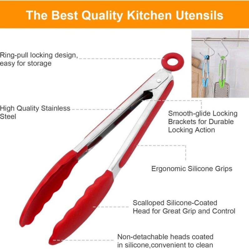 Wholesale Kitchen Cooking Tongs Set With Heat-Resistant Silicone Tips Customized Tongs Stainless Steel Kitchen BBQ Grill Clamps