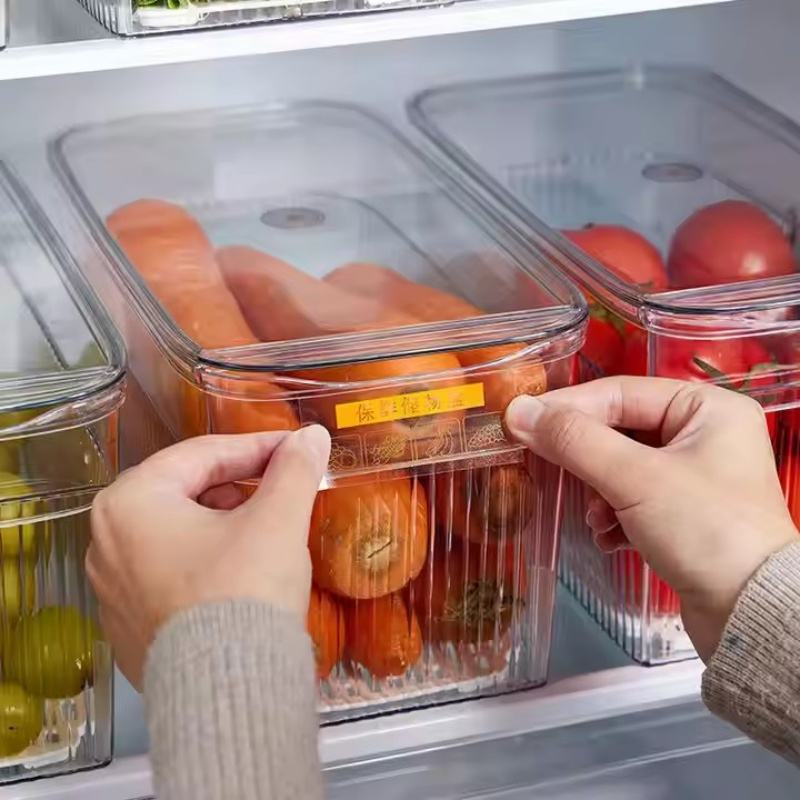 Wholesale Kitchen Fridge Stackable Food Storage Container Lid Drain Tray Office Organizer PET Material Eco-Friendly Storage