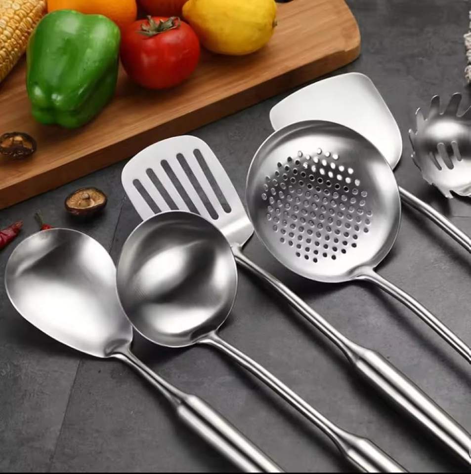 Wholesale Kitchen Soup Ladle Skimmer Turner Spatula Rice Scoop Utensil Sets Stainless Steel Modern Customized Silicone