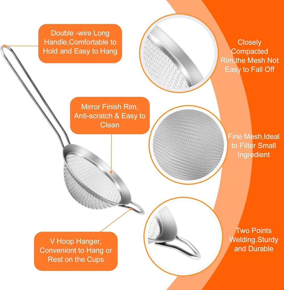 Wholesale Kitchen Utensils Leaky Pots and Filters Set of 3 Fine Mesh Sieve Stainless Steel Strainers Foldable Eco-Friendly