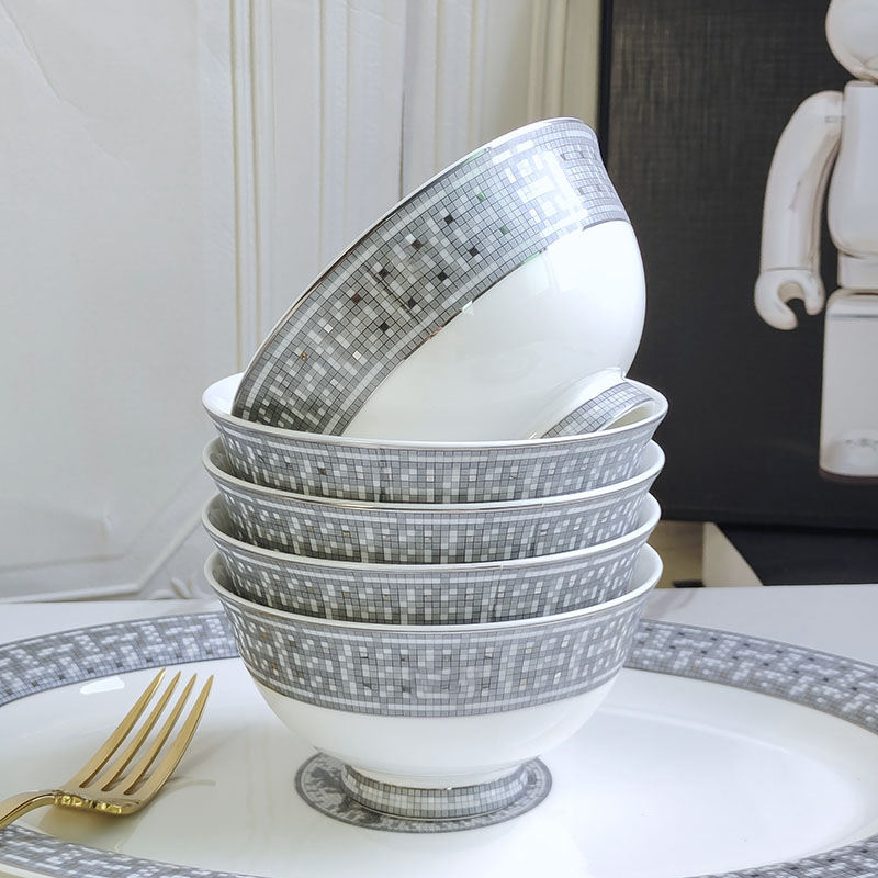 Wholesale Kitchen Utensils Luxury Tableware Mosaic Dinner Set Dinnerware Set Grey Royal Western Ceramic Bone China 58pcs