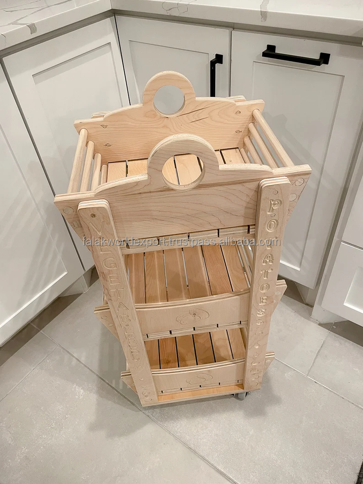 Wholesale Kitchen Wooden 3 Tier Bamboo Fruit and Vegetables Storage Basket With Wheels From Falak world Export