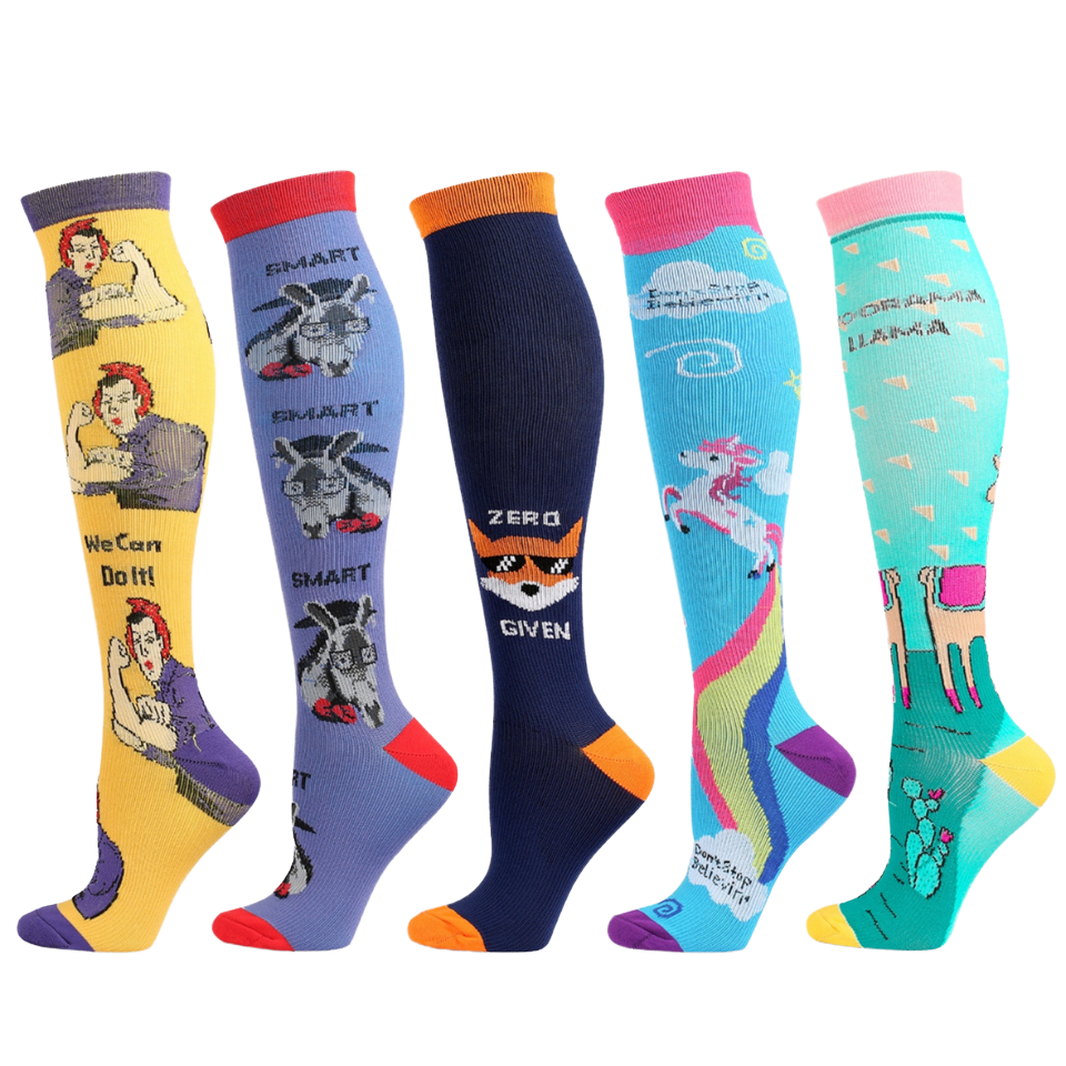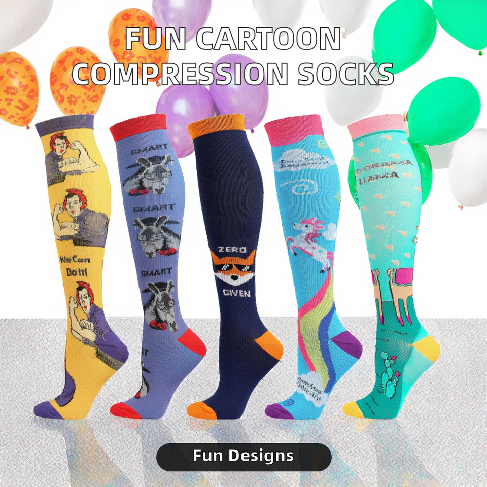 Wholesale Knee High Compression Running Socks for Women Men Fun Cartoon Graphic 15-20 Mmhg Knitted Technique for Autumn Season