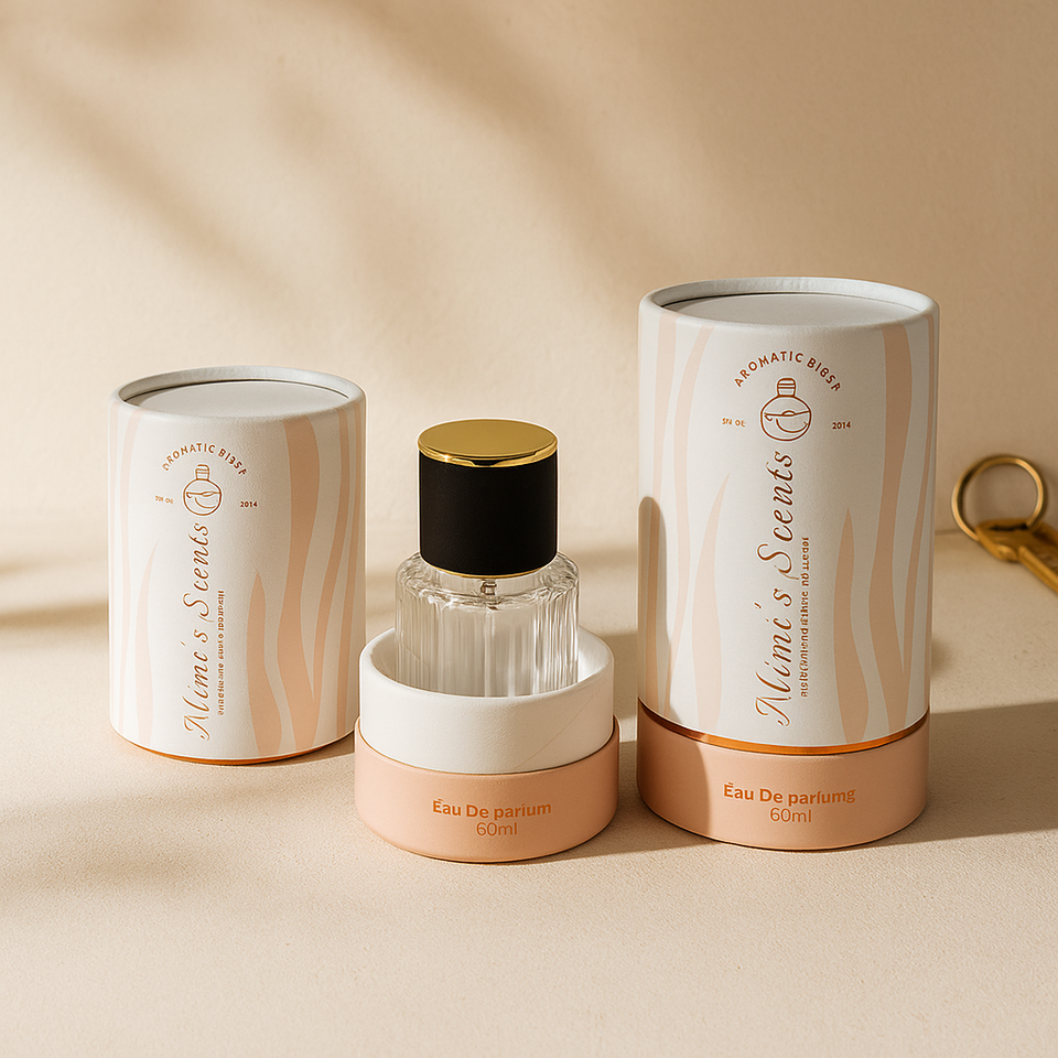 Wholesale Kraft Cylinder Paper Perfume Bottle Box Embossing & Vanishing Finish Customized Size Paper Tube Packaging