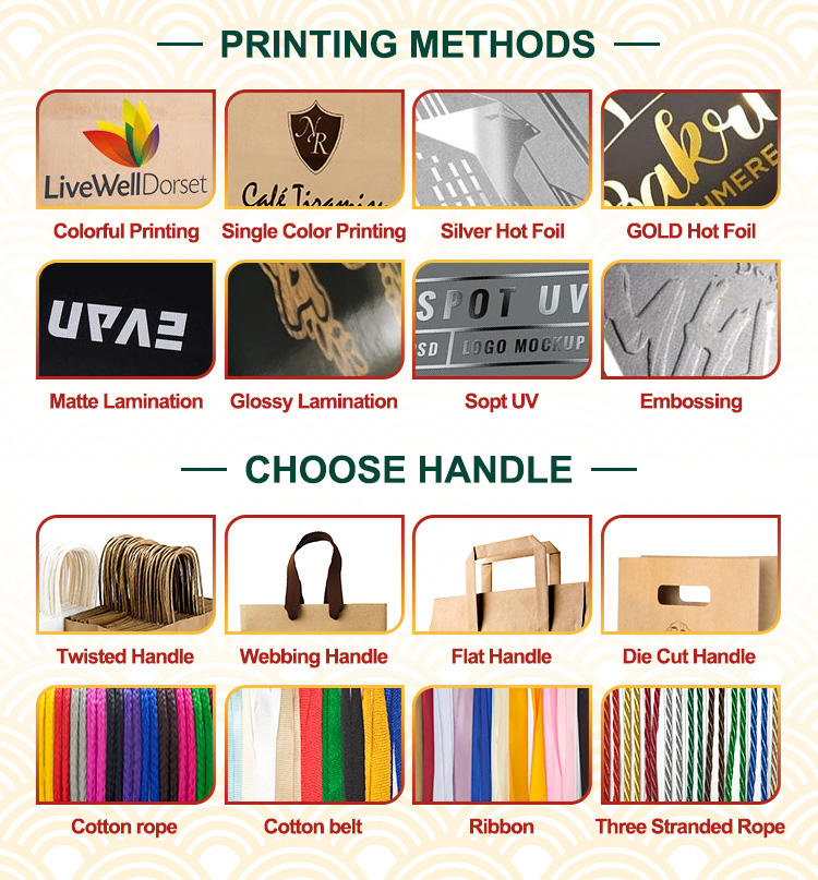 Sealing & Handle:Twisted, Flat Handle, Ribbon, PP Rope, Cotton, Die-cut, etc