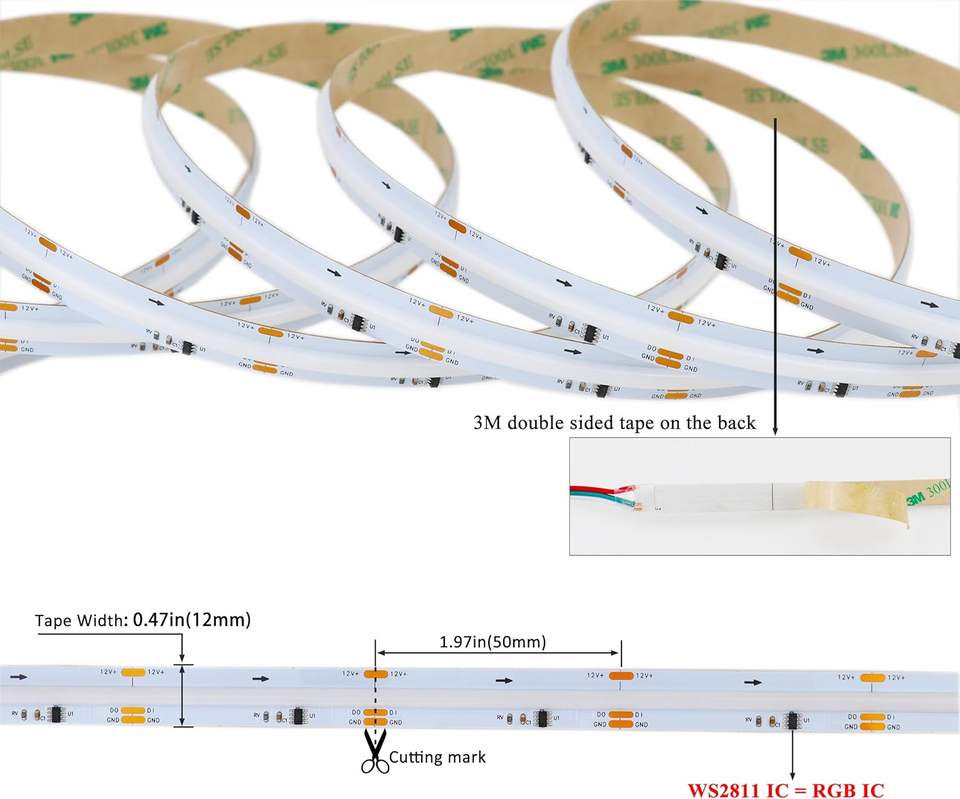 Wholesale LED Factory RGB Full-color Cob Led Flexible Strip Light 24V Programmable for Room Atmosphere Lamp