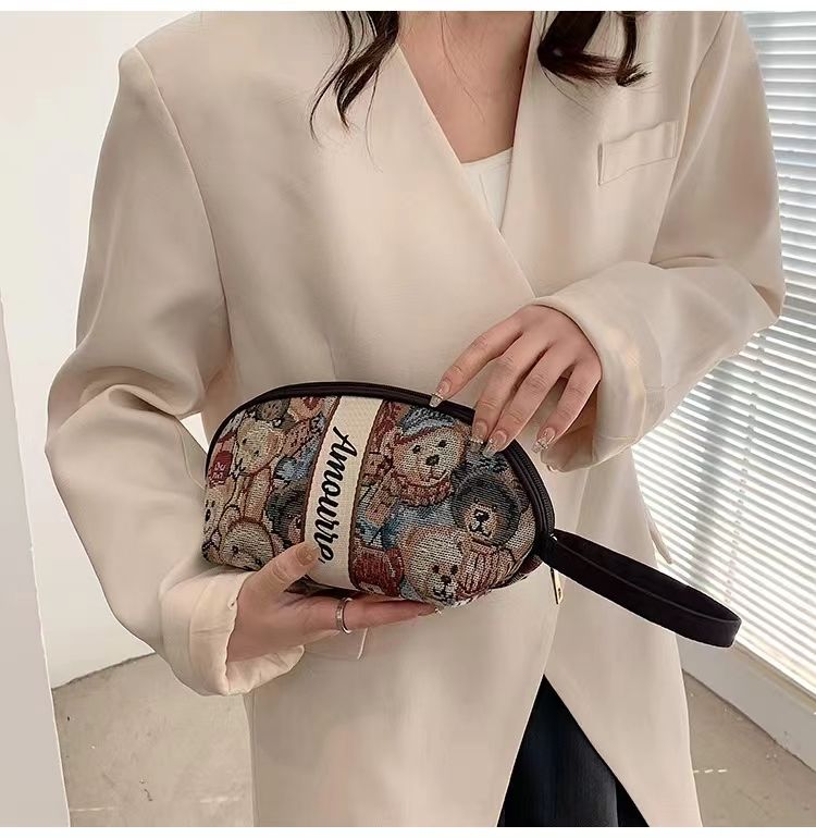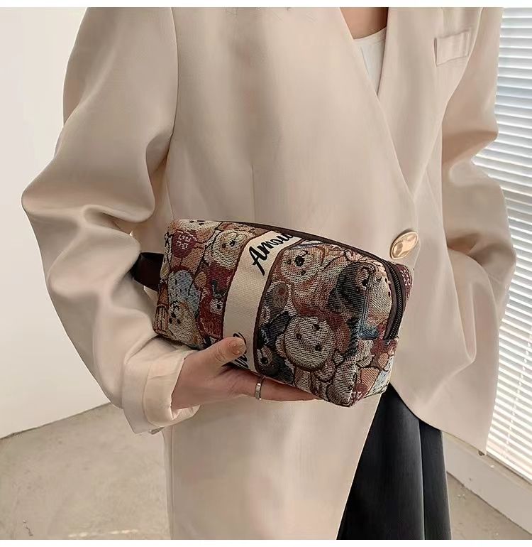 Wholesale Ladies Cute Teddy Bear Jewelry Skincare Outdoor Portable Travel Bag Cosmetic Makeup Pouch