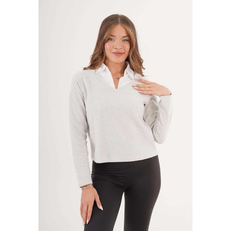 Wholesale Ladies Formal Blouse Embroidered Logo Grey Shirt Collar Trimmed Free XL Loose Collarless Silk Chiffon Poplin Knitted