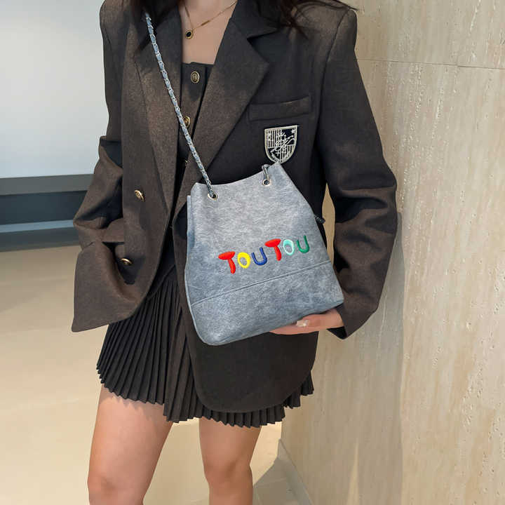 Wholesale Ladies' Large Capacity PU Leather Crossbody Bag Fashionable Embroidered Zip Drawstring Backpack Geometric Chain Summer