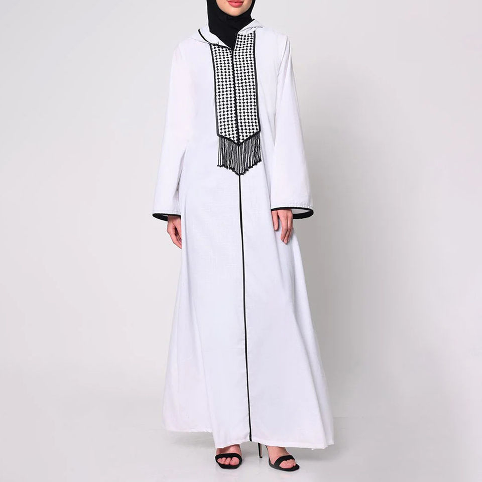 Wholesale Ladies Modest Muslim Abaya Classic Open Style Pearls Embellishments Lavender Aura Solid Color Simple Fashion Element