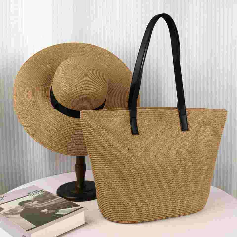 Wholesale Ladies Straw Beach Bag With Hat Women Straw Bag Fashion Summer Vacation Floppy Sombrero De Paja Wide Brim Beach Hats